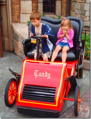 My husband and I always looked for the quiet corners that weren't very busy. We found a perfect place in Epcot one year with water fountains that spurted at different intervals. Steve and I were happy to be off of our feet and away from the crowds, and the kids enjoyed playing with the water fountains. We stayed in that spot just relaxing for at least an hour. Another place we really enjoyed was Hollywood Studios Back Lot where we just strolled through the sets, posed for pictures, and just relaxed a bit while the kids enjoyed pretending they were in the movies.